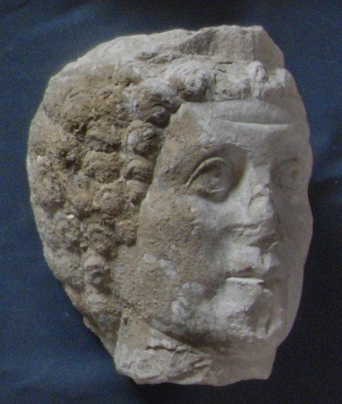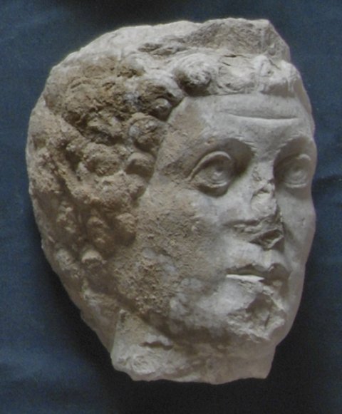 - Kopf eines bartlosen Jünglings mit kurzen Locken und Diadem (Genius ?).