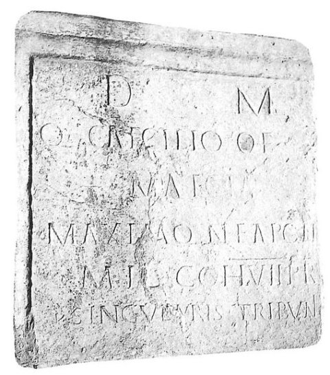 - D(is) M(anibus) / Q(uinto) Caecilio Q(uinti) f(ilio) / Maecia / Maximo Neapoli / mil(iti) coh(ortis) VII pr(aetoriae) / singulari{s} tribuni