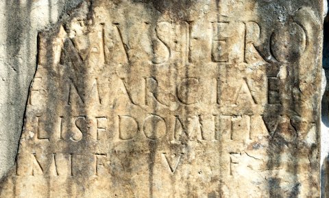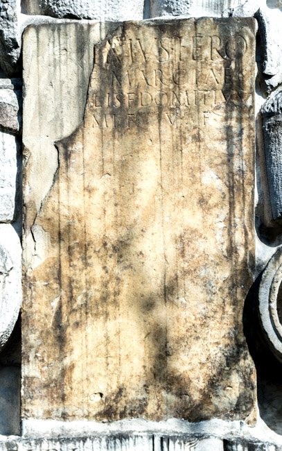 - [Alc]imus Iero/[nis] f(ilius) Marciae / [Dio]clis f(iliae) Domitius / [Alc]imi f(ilius) v(ivus) f(ecit)