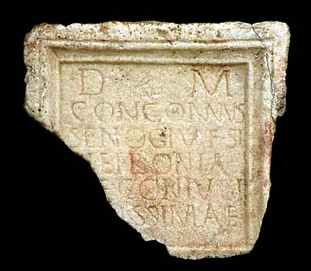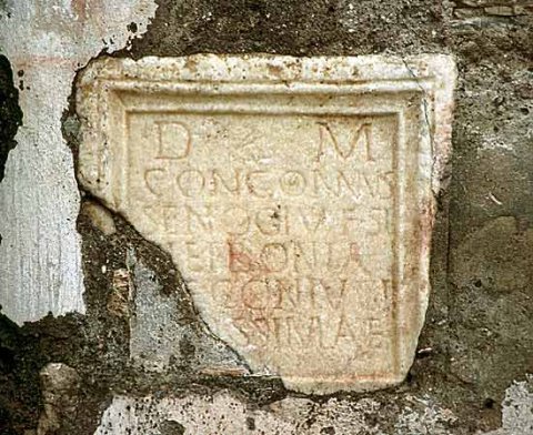 - D(is) M(anibus) / Conconnus / Senogi v(ivus) f(ecit) si/[b]i et Bonia/[ta]e coniugi / [car]issimae