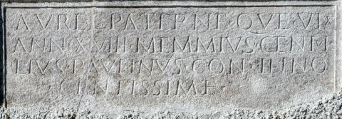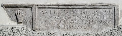 - Aurel(iae) Patern(a)e qu(a)e vixit / ann(os) XVIII Mennius Centul/lius Paulinus con(iugi) inno/centissim(a)e // [---]no ha/ve