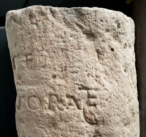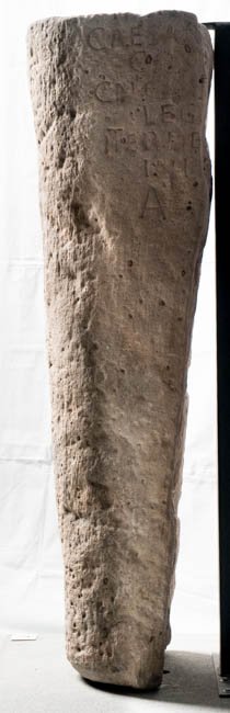 - [Imp(eratore) Vespasiano Caesare] / [Aug(usto) pontif(ice) max(imo) trib(unicia) pot(estate) V imp(eratore)] / [XIII p(atre) p(atriae) co(n)s(ule) V design(ato) VI] / [Imp(eratore) T(ito) Caesare Aug(usti) f(ilio)] / [co(n)s(ule) III design(ato) IV] / Caesar[e Aug(usti) f(ilio) Domitia]no / co(n)s(ule) [II design(ato) III] / Cn(aeo) Cor[nelio Clemen]te / leg(ato) [Aug(usti) pr(o) pr(aetore)] / iter de[rectum ab Arge]ntorate / in R[aetiam] / A[rgentorate] / [m(ilia) p(assuum) ---]
