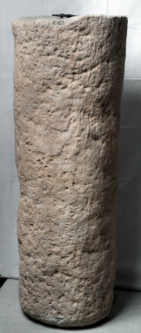 - oben, unten u. links abgebr., vertikal gespalten, Mittelteil der Inschrift fehlt