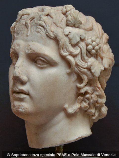 - Mythische Figur: Kopf des jugendlichen Dionysos mit Efeukranz (Kopie eines Originals des Lysipp ?).