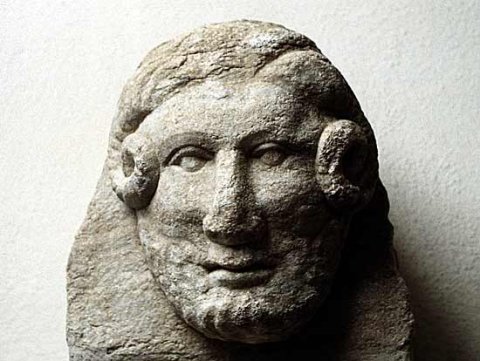 - Firstkappe. Mythische Figur (Jupiter Ammon): bärtiger Kopf mit gebogenen Hörnern.
