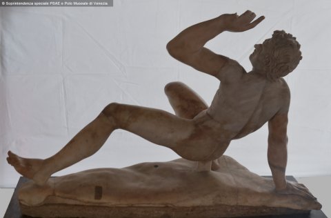 - Rücklings fallender nackter Gallier, auf die rechte Hand gestützt. Kopie nach späthellenistischem Original aus Pergamon.