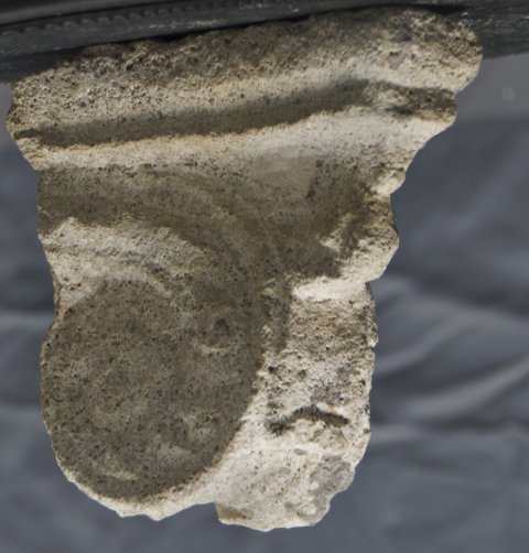 - Volutenfragment, stark verwittert