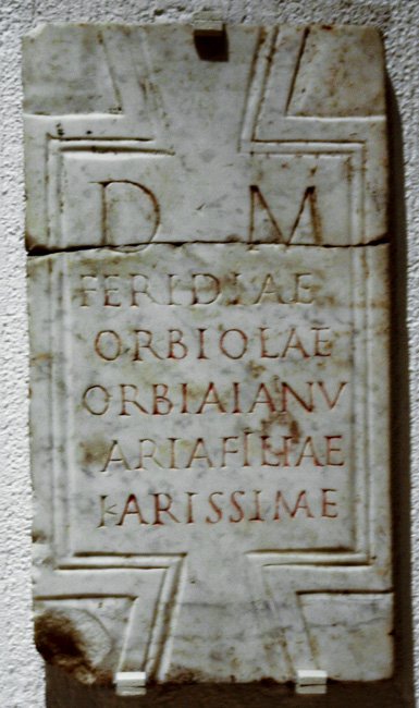 - D(is) M(anibus) / Feridiae / Orbiolae / Orbia Ianu/aria filiae / karissimae