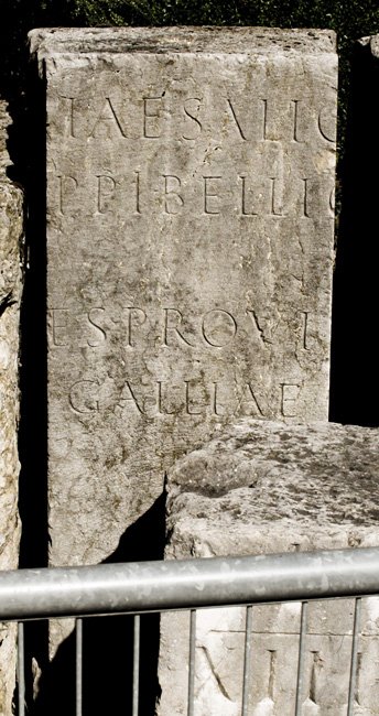 - [---]iae Salicae / [Ti(beri) E]ppi Bellici / [tr]es provinc(iae) / Galliae // [---]VI[---] / Ti(beri) [Eppi Bellici] / sa[cerdotis] / QV[---]