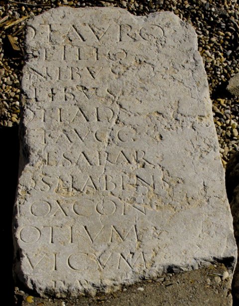 - [---]o Tauro / [---] filio / [apud suos om]nibus / [honorib(us) municipa]libus / [functo sacerd]oti ad / [aram Romae] et Augg(ustorum) / [inter confluen]tes Arar(is) / [et Rhod(ani) qui ann]os habens / [---]OX con/[secutus est sacerd]otium / [--- q]uicum/[que ---] +++