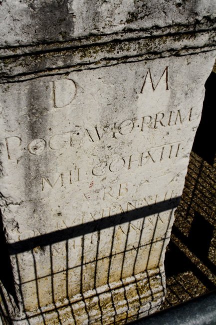 - D(is) M(anibus) / P(ublio) Octavio Primo / mil(iti) coh(ortis) XIII / urb(anae) / qui vixit an(nos) XlII / milit(avit) an(nos) XXI / her(edes) bene mer(enti) / p(onendum) c(uraverunt)