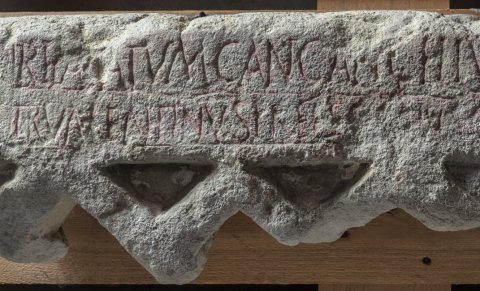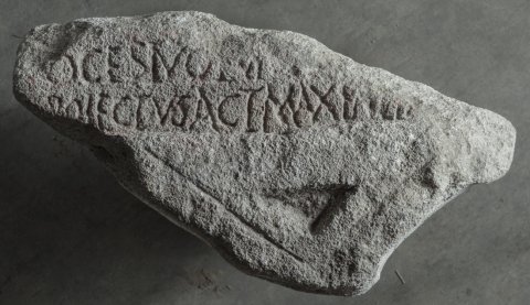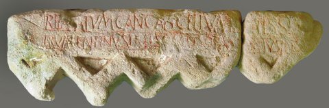 - Re[p]a[r]atum can{can}cellum s/[a]n(c)tissem[i ---] / hoc est votum [---] /tr(ibunus) Valentinus pr(a)ef(ectus) S[---]tius oram / [---]ntius Mestr[---] / Proiectus act(uarius) Max[---