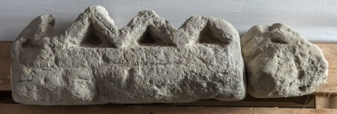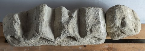 - 3 Fragmente, unten abgebr., abgerieben, Stuck- u. Farbreste