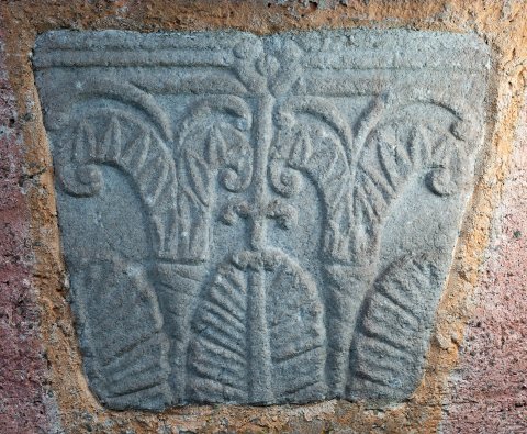 - Pilasterkapitell mit Akanthusblattkranz und daraus wachsenden Blattstängeln
