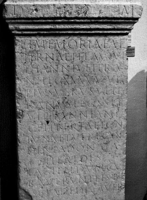 - D(is) M(anibus) // et memoriae ae/ternae T(iti) Flavi Vi/thanni vetera/ni leg(ionis) XXX U(lpiae) V(ictricis) Ul/pius Verus vete/ranus leg(ionis) s(upra) s(criptae) et / Vithannia Ni/ce liberta et con/iunx et Verecun/dinia Donata / heredes / faciendum cu/raverunt et sub / [a]scia dedicaver(unt)