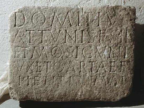 - Domitius / Attunis f(ilius) sib(i) / et Mosicuni / ux(ori) et Quartae f(iliae) / pientissimae