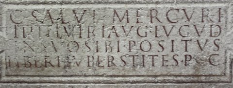 - D(is) M(anibus) et memoriae // C(ai) Salvi Mercuri / IIIIIIviri Aug(ustalis) Lugud(uni) in suo sibi positus / liberi superstites p(onendum) c(uraverunt)