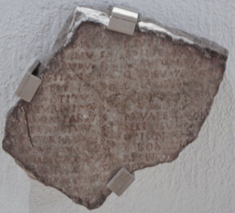 - ---]cus / [---]olus / [--- Iu]nianus(?) / [---] Lupus / [--- C]assianus / [---] Felix / [---] Potitus / [---] Saturninus / [---] Maximianus / [---]us Perpetuus / [---]ius Cerialis / [---] Salvianus / [---]us Ianuarius / [---] Aprilis / [--- Me]rcurialis / [---]mus / [---]ius / [ // ] / T(itus?) Apr[---] / T(itus) Iulius [---] / P(ublius) Silic() Nund[---] / M(arcus) Antonius Gr[---] / Q(uintus) Helvius Roga[tus] / L(ucius) Aristius [---] / Q(uintus) Iulius Sui[llius?] / L(ucius) Valerius Ti[---] / M(arcus) Valer(ius) Secu[ndus?] / Sex(tus) Iulius C[---] / Q(uintus) Ignius [---] / T(itus) Domitiu[s ---] / M(arcus) Serot[---] / Sext[us ---] / T(itus?) [---