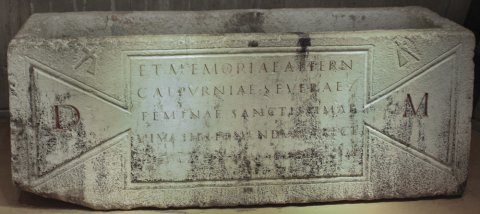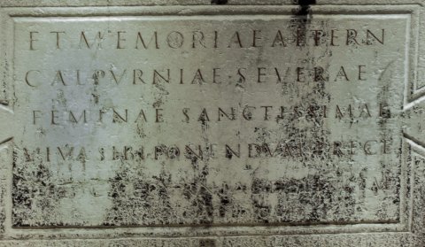 - D(is) M(anibus) // et memoriae aetern(ae) / Calpurniae Severae / feminae sanctissimae / viva sibi ponendum prece/pit Calpurniae Delicatae / et (h)eredi / et sub ascia dedicavit