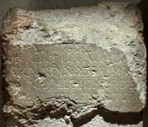- Ti(berio) Cl(audio) Ti(beri) fil(io) Palati[na] / Secundino L(ucio) Stat(io) Ma[ce]/doni p(rimo) p(ilo) leg(ionis) IIII Fl(aviae) Fide[lis] / trib(uno) coh(ortis) I vig(ilum) trib(uno) coh(ortis) XI / [urb(anae) trib(uno) coh(ortis) IX p]raetor(iae) / [---