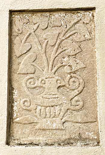 - Hochrechteckiges Bildfeld mit Krater mit Efeuranken.