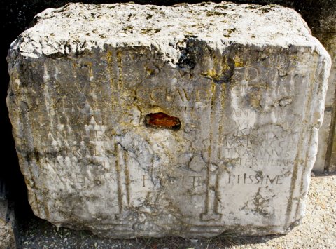 - Perpetuae securitati et // D(is) M(anibus) / C(ai) Claud(i) / Liberalis / et Liviae / Ianthes / Cl(audius) Traia/nus fil(ius) / parentibus // D(is) M(anibus) / C(aius) Claud(ius) / [---] fil(ius) / [---] / [---]s / [---] / f[ec]it // D(is) M(anibus) / Claudiae / C(ai) fil(iae) pia[e] / animae / dulcissimae / vixit an(nos) XVII / m(enses) X d(ies) X C(aius) Cl(audius) / Traianus / pater filiae / piissimae