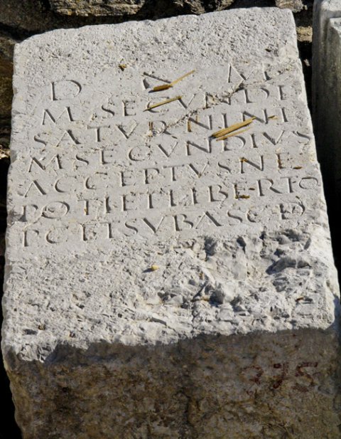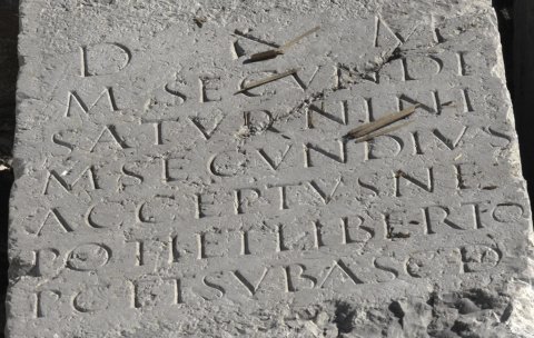 - D(is) M(anibus) / M(arci) Secundi / Saturnini / M(arcus) Secundius / Acceptus ne/poti et liberto / p(onendum) c(uravit) et sub asc(ia) d(edicavit)