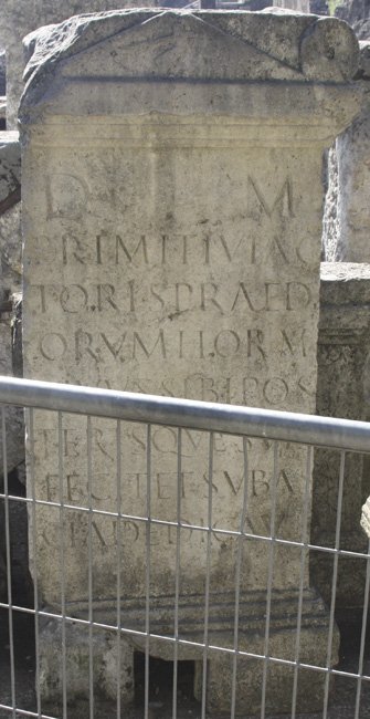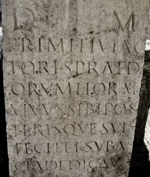 - D(is) M(anibus) / Primitivi ac/toris praedi/orum horum / vivus sibi pos/terisque suis / fecit et sub as/cia dedicavit