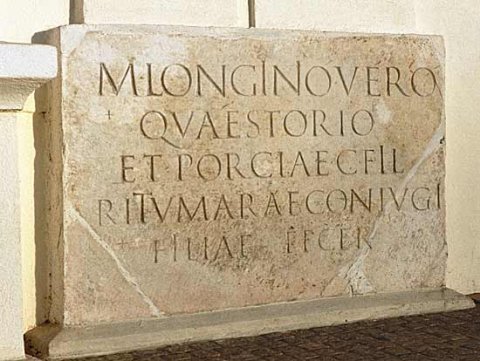 - M(arco) Longinio Vero / quaestorio / et Porciae C(ai) fil(iae) / Ritumarae coniugi / filiae fecer(unt)