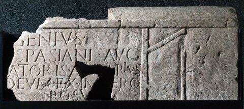 - [--- Primi]genius [[---]] / [--- Imp(eratoris) Ve]spasiani Aug(usti) / [--- dispens]atoris(?) a[r]carius / [--- Matri] deum ex im[p]erio / [eius ---?] posuit