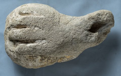 - nur rechte Hand mit Teil des Unterarms erhalten, stark verwittert