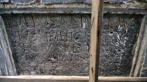 - Iulius Annamus / vi(v)us sibi fecit et Iul(iae) / Secund(a)e ux(ori) / et Iul(iae) Ianuari(a)e / fili(a)e