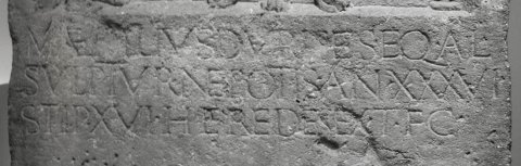 - M(arcus) Aemilius Durises eq(ues) al(ae) / Sulp(iciae) tur(ma) Nepotis an(norum) XXXVI / stip(endiorum) XVI heredes ex t(estamento) f(aciendum) c(uraverunt)