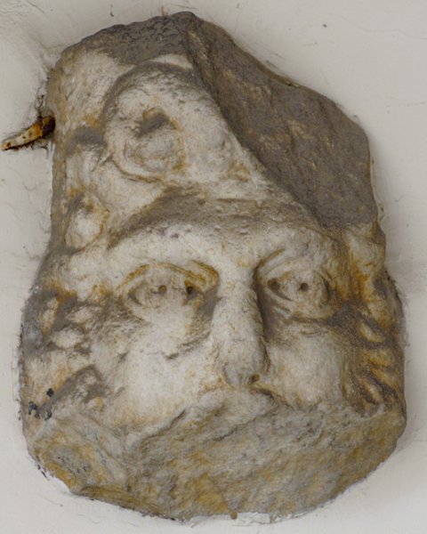 - Mythische Figur: Kopf des Jupiter Ammon mit langen Locken und Bart, oben Ansatz eines Polos und Widderhorn. Mittelteil eines Aufsatzes mit liegenden Löwen.