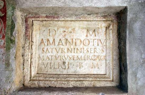 - D(is) M(anibus) / Amando T(iti) Iul(ii) / Saturnini ser(vo) (contra) sc(riptori?) / Maturus et Mercator / vilici b(ene) m(erenti)