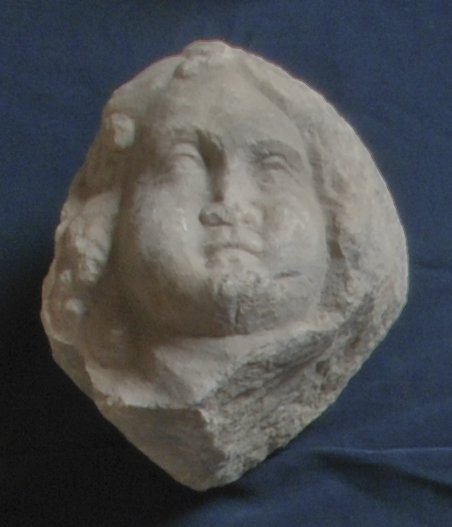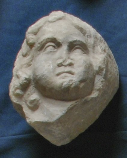 - unterlebensgroßer Erotenkopf mit langen Locken (Rest eines Sarkophagreliefs ?)