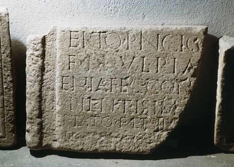 - Tertio Pincio[nis] / f(ilio) M(arcia) Ulpia [Primig]/enia fec(it) con[iugi] / pientissimo [et O]/ptato f(ilio) et sibi [v(iva) f(ecit)]