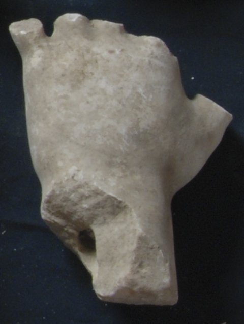 - Finger abgebr., in der Bruchstelle im Handgelenk runde Bohrung