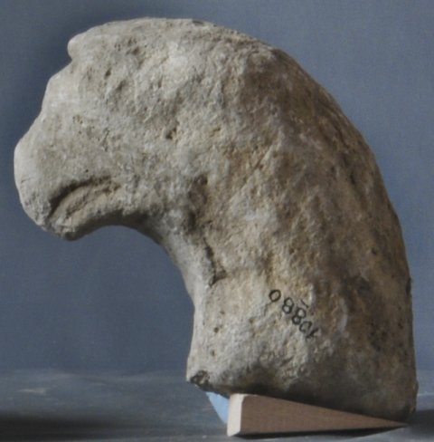 - stark verwittert, im Hals abgebr. (Protome ?)