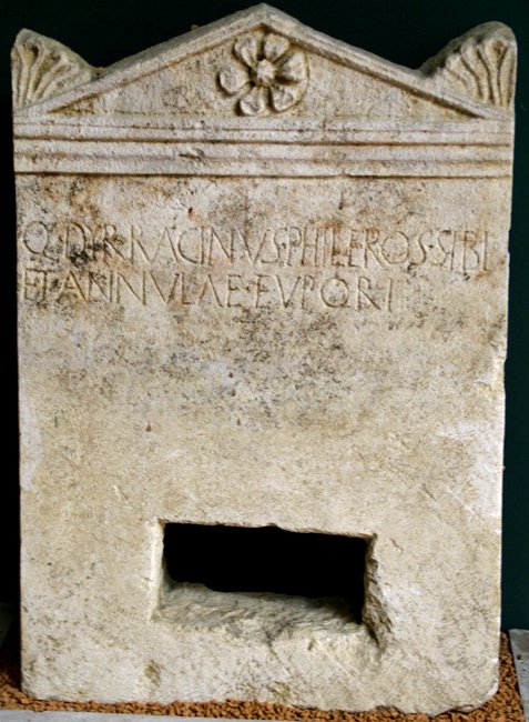 - Q(uintus) Dyrracinus Phileros sibi / et Annulae Eupori