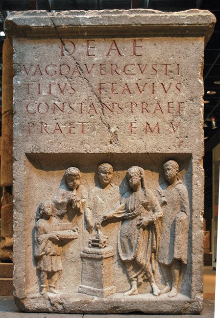 - Deae / Vagdavercusti / Titus Flavius / Constans praef(ectus) / praet(orio) em(inentissimus) v(ir)