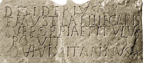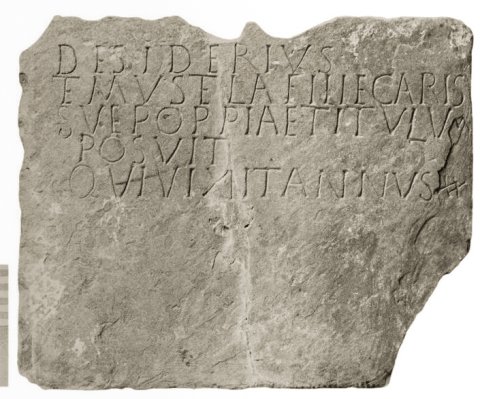 - Desiderius / et Mustela fili(a)e caris(simae) / su(a)e Poppiae titulum / posuit(!) / qui(!) vixit annus(!) XX