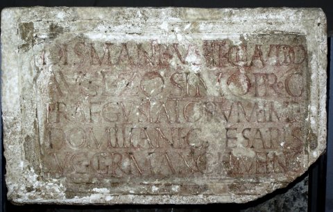 - Dis Manibus Ti(berio) Claudio / Aug(usti) l(iberto) Zosimo proc(uratori) / praegustatorum Imp(eratoris) / Domitiani C[a]esaris / Aug(usti) Germanici h(oc) m(onumentum) h(eredem) n(on) s(equetur)