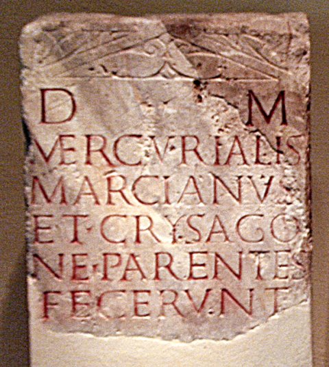 - D(is) M(anibus) / Mercurialis / Marcianus / et Crysago/ne parentes / fecerunt