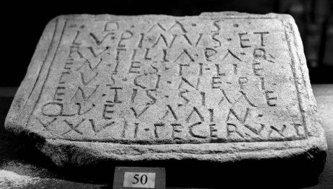 - D(is) M(anibus) s(acrum) / Lupinus et / Rufilia par/entes fili(a)e / Fuscin(a)e pi/entissim(a)e / qu(a)e v(ixit) ann(os) / XXVII fecerunt