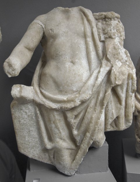 - Mythische Figur: stehender Genius mit Füllhorn, Mantel um Hüften und linken Arm. Neben dem rechten Bein Stütze.