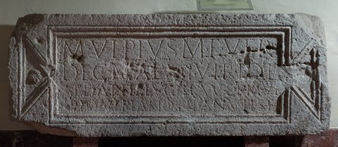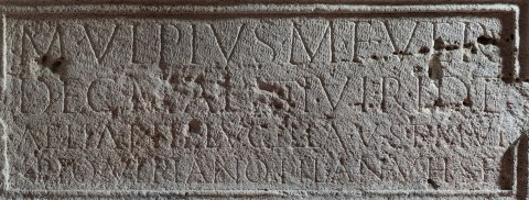 - M(arcus) Ulpius M(arci) f(ilius) Verus / dec(urio) m(unicipii) A(eli) K(arnunti) IIIIvir i(ure) d(icundo) et / Aelia P(ubli) fil(ia) Lucilla v(ivi) s(ibi) et M(arco) Ul/pio Ulpiano fil(io) an(norum) V h(ic) s(ito) f(ecerunt)