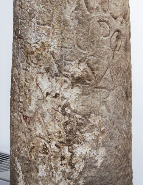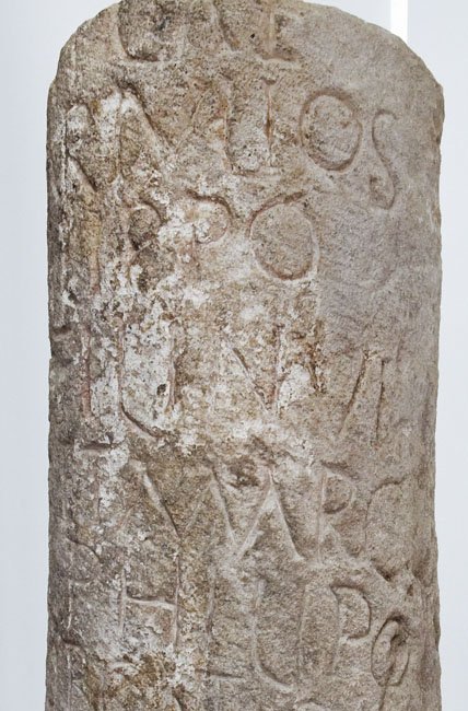 - Imp(eratori) Caes(ari) / Mar(co) Iulio / Philippo / Pio Fil(ici!) Invi(cto) / Aug(usto) et Marc(o) / Iul(io) Philip(p)o / nob(ilissimo) Caesa/res(!) per / ter(ritorium) Abri(tanorum) / m(ille) p(assuum) I