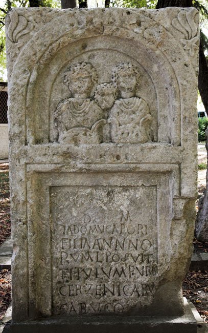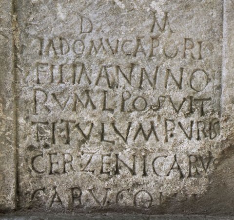 - D(is) M(anibus) / Iado Mucapori / filia ann{n}o/rum L posuit / titulum Puris / Cerzeni carus / {caru} coniu[gi