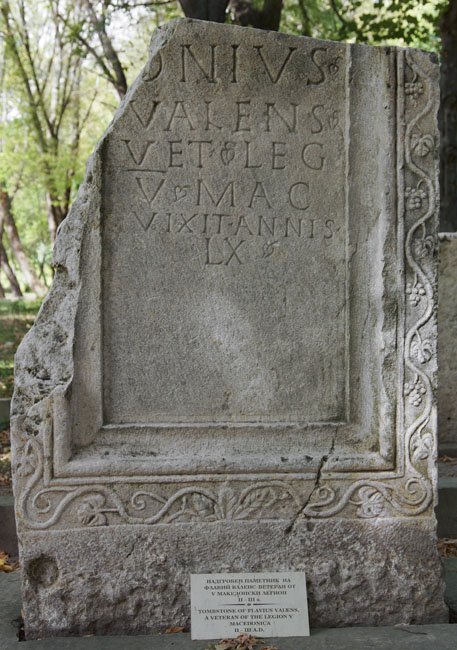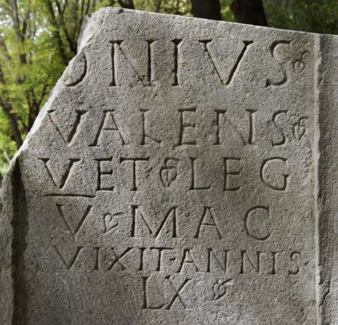 - ---]/M(?)[---]/onius / Valens / vet(eranus) leg(ionis) / V Mac(edonicae) / vixit annis / LX